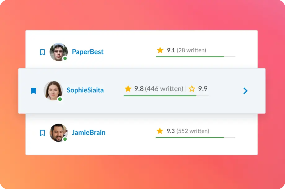 You can choose a research paper writer according to their experience, rating, and the bids they place. All of our specialists have relevant experience in academic writing and can help you overcome all kinds of writing challenges.